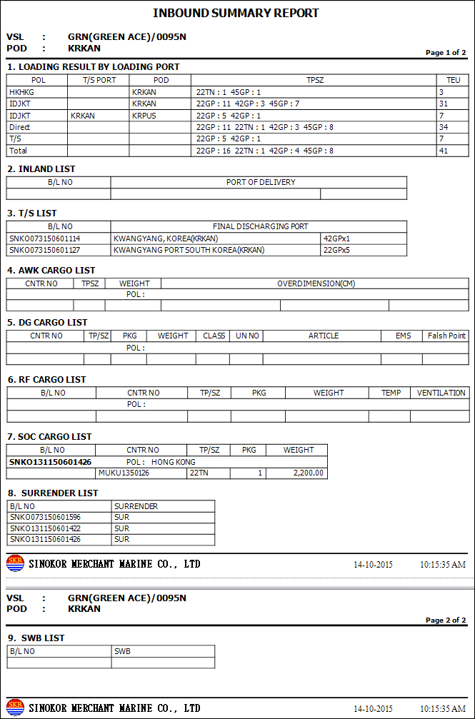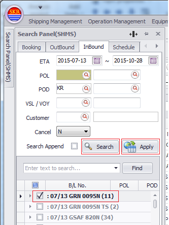 Vessel/Voyage/Port combo box - This comes from Search Panel. Choose data then data will be shown on the grid.