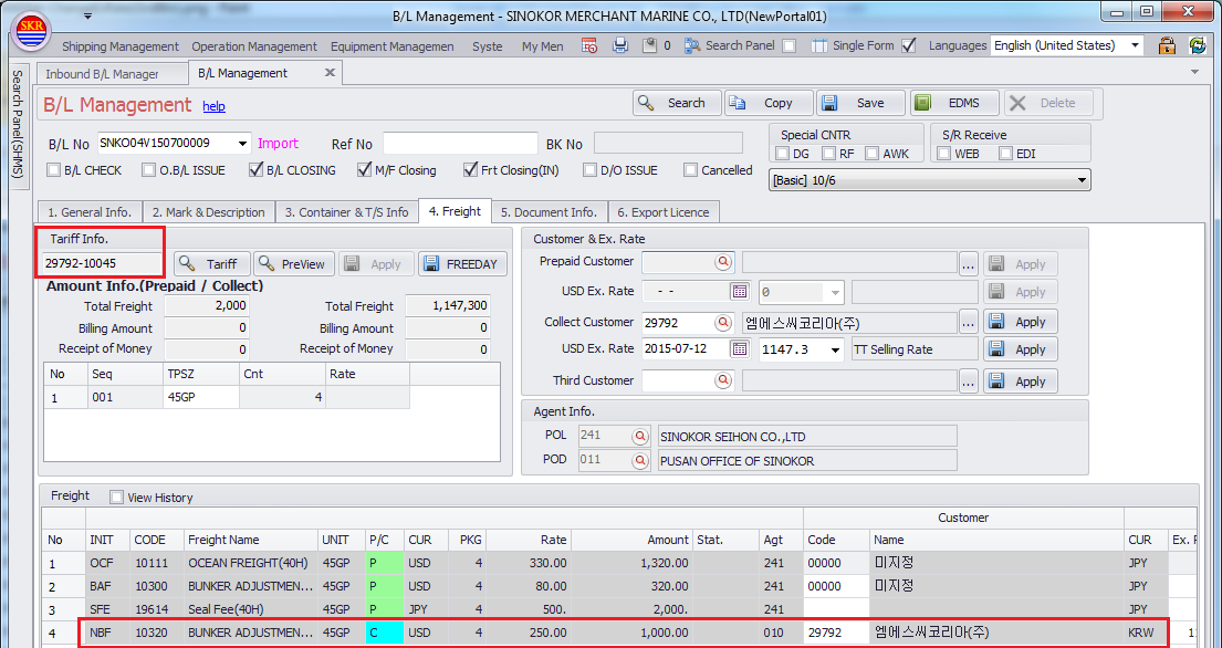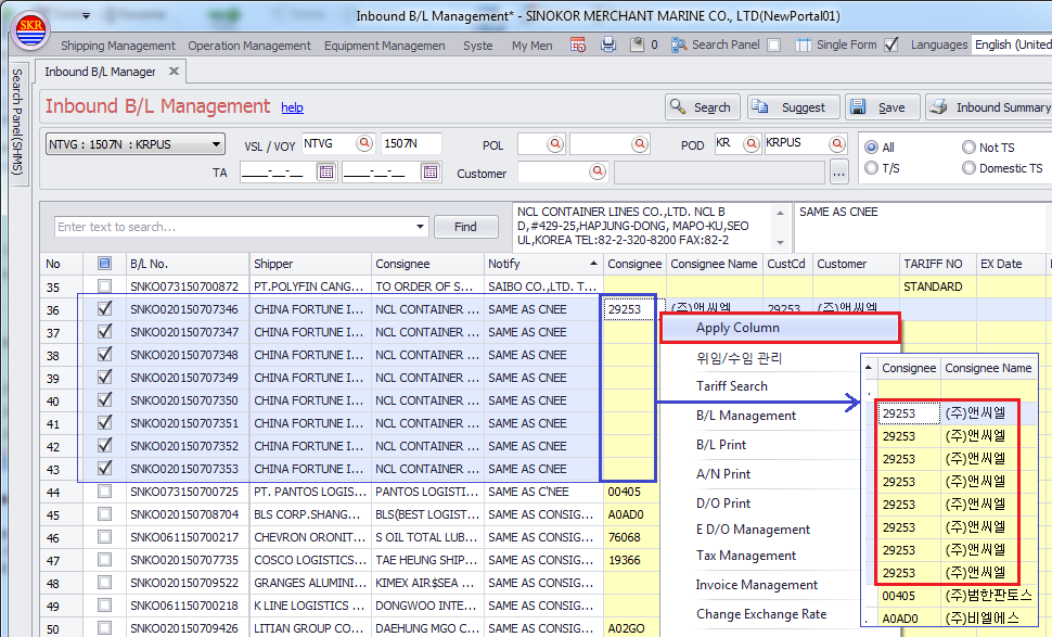 You can assign customers to specified B/L(s) for issuing Invoice by vessel/voyage.