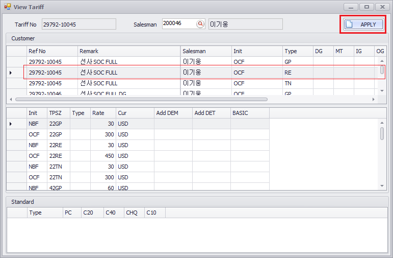 caution) to apply same tariff to 'TARIFF NO' column, customers of selected rows should be same.